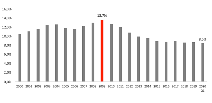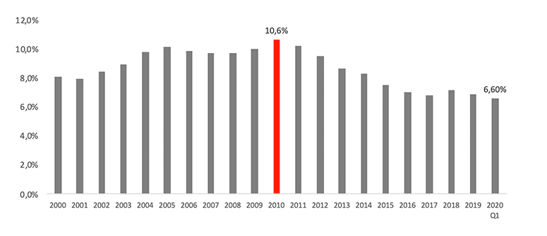 Vacancia Arriendo Casas en EE.UU Sur (miles)